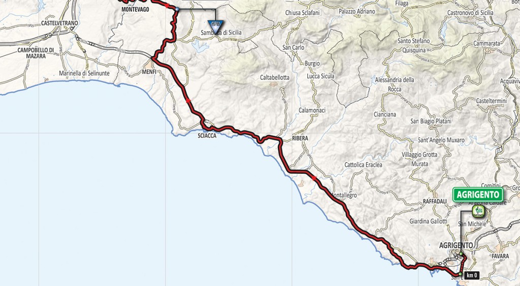 Tappa molto mossa e costellata di difficoltà con numerosi saliscendi attraverso le asperità del sud della Sicilia. Due i GPM classificati, ma molte di più le salite compresa quella finale che porta nella parte alta di Caltagirone. La città viene attraversata nella sua parte centrale passando vicino a luoghi famosi come la Scalinata di Santa Maria del Monte tutta rivestita di ceramica multicolore.