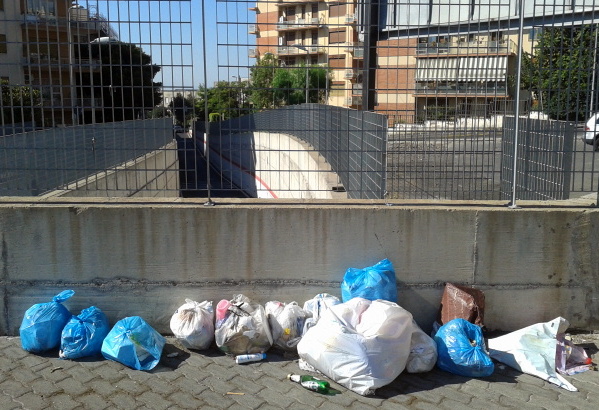 Le aree che consentono di costeggiare la circonvallazione in questo tratto in entrambe le direzioni sono fatiscenti e vengono continuamente attraversate da studenti. La piccola area sopra il sottopassaggio, in particolare, è divenuta una piccola discarica abusiva di rifiuti, ironia della sorte, proprio di fronte a un cartellone pubblicitario del Ministero che invita a mantenere pulito l’ambiente.