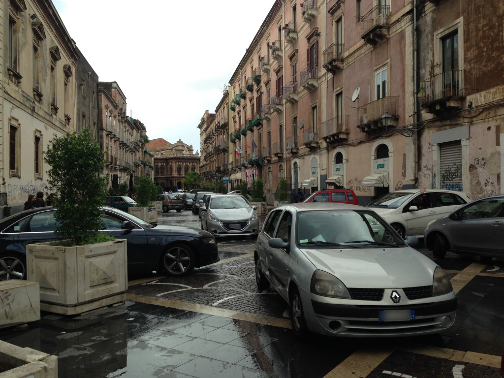 Questa strada, molto frequentata da catanesi e turisti, dovrebbe essere a traffico limitato ma, come le foto testimoniano, il divieto non viene rispettato: ogni giorno, specialmente nelle fasce orarie di entrata ed uscita degli studenti del vicino istituto Convitto Cutelli, si vengono a formare vere e proprie code.